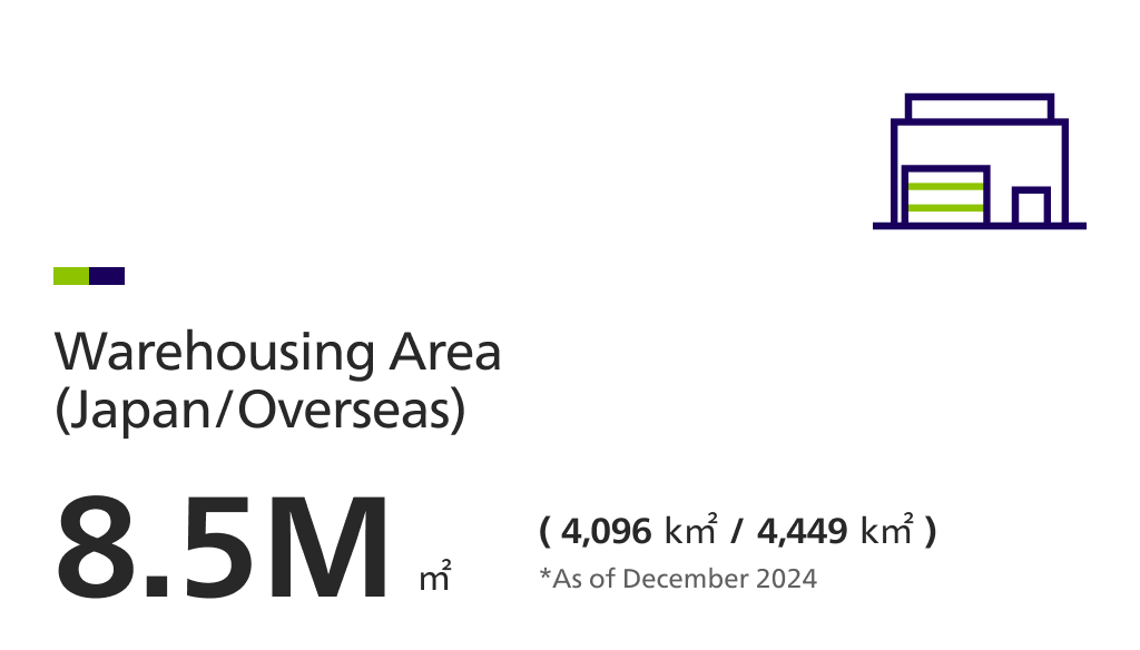 NX Group has the largest warehouse area in Japan, and integrates warehouse functions with the delivery network to build globally optimized logistics.